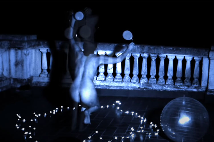 白塗り&全裸な女性によるパフォーマンス動画、のけぞった時にも一切オッパイの形が変わらない事から恐らくは何かが中に詰め込んであるのだろうと思われる。
