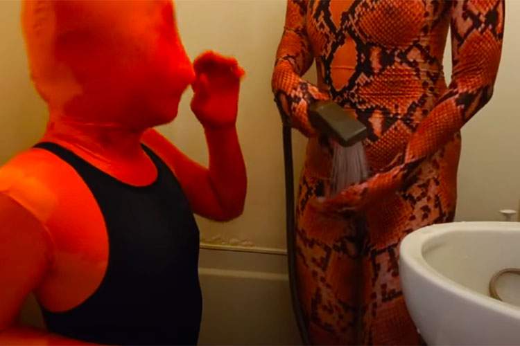 全身タイツ愛好家を自称するねずみこさんと言うYoutuberの方、今回紹介する動画では2人で全身タイツを着用しお風呂に入っている。