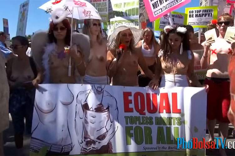 カリフォルニア州 ロサンゼルスのベニスビーチで行われた「トップレスの平等な権利を求める集会」の様子、こちらは2012年に撮影された物で、丁度この手のマイノリティーに権利をみたいな運動が活発化してる頃だったように思う。