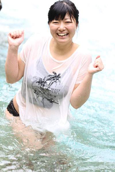 このただの海じゃね?みたいな場所でも臆せず入浴してみる辺りにプロ根性を感じる。