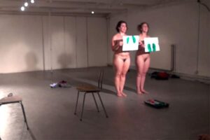 【芸術】唐突に全裸になってケツにペンキを塗り尻拓を取る女子2名